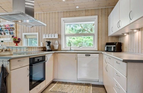 this cosy, ground-floor energy-saving house welcomes you with a bright and cosy interior Look forward to convivial meals at the inviting dining table and enjoy the view of the greenery, while you make yourself comfortable in the cosy living room for relaxing hours of reading by the wood-burning stove or playing a board game.