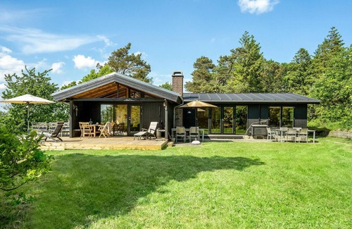 On a huge nature plot with panoramic views, this inviting vacation home near Fuglsø Strand awaits you.