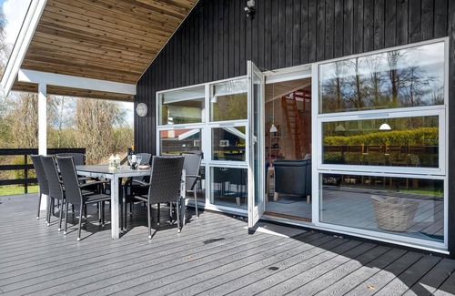 This beautiful wooden house with sauna is equipped with all modern conveniences. Interior wooden walls give the house a rustic look. There are tile floors in the kitchen and bathrooms, the rest of the house has wooden floors. The larger of the two bathrooms includes the sauna for 6 people and the whirlpool for 2 pers. There are 2 sleeping places on the sleeping loft in the living room. Good fishing opportunities. Put and take lake nearby. The property has a fire pit. Spodsbjerg Havn ferry, fishing and marina is only 1.8 km away. Rudkøbing, the capital of Langeland is only 8.5 km from the house. In it you will experience a nice mixture of old charm and modern business life. Many shops are located in houses with beautiful facades.