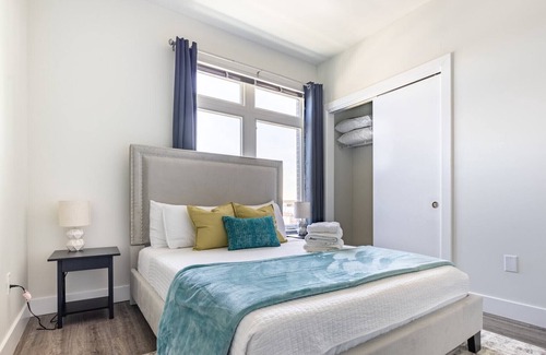 Cozy 2 bed/2 bath apartment located in a brand new building. Our unit comes fully furnished with a list of amenities to make your stay the most comfortable. Each bedroom has a queen sized bed with blackout curtains, a separate bathroom, a Roku tv and a desk/workspace. The unit has a washer & dryer as well for your convenience. We also provide one reserved parking space.