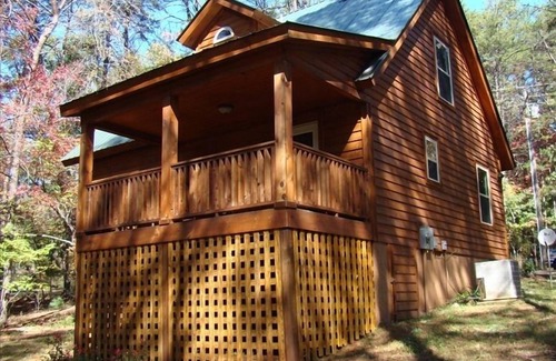 the cabin is on a one acre wooded lot, private, but not isolated; just minutes from lake burton, where you can rent a boat, spend the day on the lake, and come home and fire up the grill for dinner on the deck The location is great if you want to get out and enjoy the North Georgia Mountains. The Appalachian Trail is 20 minutes away, Helen is 14, and picturesque Lake Burton is a beautiful 5 mile drive to the north.