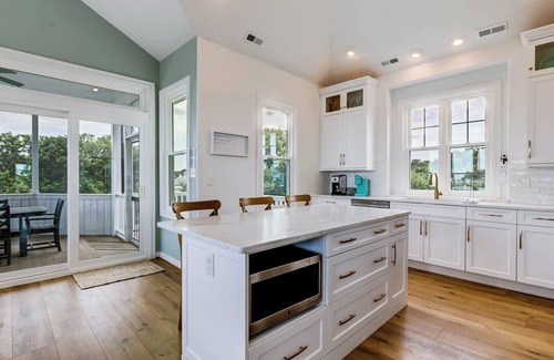 north view welcomes you! enjoy expansive ocean views from the entire main floor area including the master bedroom and east-facing decks Located on the quiet north end of Sandbridge just a short walk to the beach access and the local market. North View is a well-maintained gem with many updates including luxury vinyl tile throughout - New for 2024 will be 2 complete bathroom renovations! The new modern kitchen is fully stocked with everything you need to prepare meals while enjoying the views. Seating is available around the kitchen island, large family table plus the deck and fully screened porch off the kitchen. Make memories around the large private pool, poolside cabana with full-size refrigerator, bar seating, LCD TV, cabana half bath, and poolside deck. There is plenty of room for the entire family to hang out at the pool together and play in the large grassy fenced in backyard. Enjoy easy access to the pool from the wrap-around deck with access to the mid-level bedrooms. After a day in the sun, cool off in the outdoor shower, boasting hot and cold water. You will find privacy and plenty of space to relax with five large bedrooms and the open and airy top-level main living space. The ground-level rec room has a pool table, wall-mounted Smart TV, and convertible furniture for additional seating or sleeping. a minute's drive to the local market or rent bikes or a golf cart and ride wherever you wish for a quick meal, souvenir shopping, or just coffee and a newspaper!