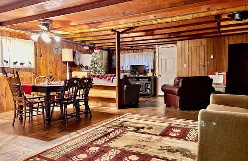 A rustic, permalog style cabin that is suited to accommodate up to nine. This is a cabin to help disconnect from the hustle and bustle of our chaotic lives. There is limited cell signal, no internet and no local or cable channels. The cabin is pet friendly, as I believe our pets are an extension of our families and should get to vacation with everyone rather than boarded (dogs only are allowed, see note about pets at the end of this description). Primary source of heat is a furnace. There is an electric fireplace in the living room. In the summer there is a window AC unit at the cabin and a fan for the loft (it does get hot up there).