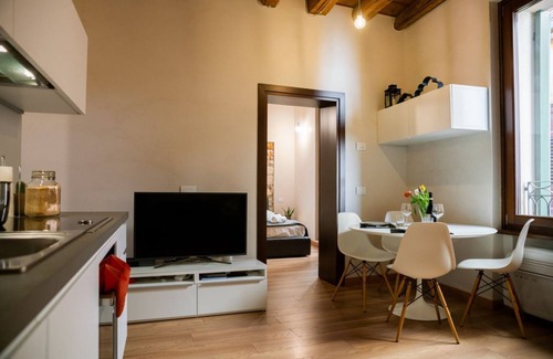 Apartment in the heart of the city, a few steps from the Arena and the main square Piazza Brà. The property is located in a pleasant residential courtyard. Inside of it and in the basement, you can admire some ruins from the Roman era.