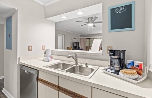additional condo amenities: the kitchen comes with plenty of silverware, cooking utensils, dishes, pots and pans, keurig coffee maker, toaster, and crock pot All appliances are new and are in excellent condition. Also charging the electronics is much easier now that our nicely positioned USB receptacles make it easier to access and charge without bringing the bulky USB to AC adaptors.