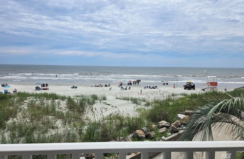 That’s what awaits you at this amazing oceanfront condo, "SEAclusion Villa," located at Ocean View Villas, at the very secluded end of Cherry Grove, at the Point, just steps away from the beach. Take it all in on the ocean front balcony with expansive views over the Atlantic Ocean, Waties Island and Hog Inlet Point. Our second floor, two-bedroom condo offers you these spectacular and panoramic views to enjoy with your morning coffee as you plan what fun you and your family might enjoy during your stay: Splashing in the ocean, swimming in the pool, fishing along the inlet for flounder or bluefish, or just relaxing on the balcony, by the pool or on the white sandy beach. Just a short drive from top area restaurants offering seafood, steaks, BBQ, Mexican cuisine, and more. If you prefer to stay in and prepare a meal, our fully stocked kitchen offers cookware, dishes, utensils, Keurig Duo coffee maker (pods and coffee pot-which ever you prefer!) along with updated and full-size appliances (dishwasher, refrigerator, stove, oven, and microwave). Settle into the waterfront and serene master bedroom with a comfortable king-size bed and plantation shutters, should you choose to sleep in, along with a private full bath with a shower. The second bedroom offers plenty of space for a queen and a twin bed. A Guava Lotus Travel crib is available upon request as well as an inflatable full bed. Please be sure to request at the time you make your reservations. The second full bathroom (tub/shower) is only steps away. Hair dryers are provided in both bathrooms. Complimentary wireless internet is provided. The complex features private gated parking and swipe-card only access to the pool for our guests. We provide our guests with chairs, umbrellas and the typical kids’ beach toys at no additional costs. Please bring your own fishing rods and make sure you get a SC recreational fishing license to be legal. While this condo is located on the second floor, there is no elevator and, consequently, it is not handicap accessible. There is a strict NO SMOKING, NO VAPING and NO ANIMALS policy in the condos. Smoking is permitted only in the designated areas of the complex. A coin laundry is located in the complex. Bedrooms offer ceiling fans and Samsung Smart TVs where you can watch the provided Spectrum Cable or log into your own streaming services. There is also a Samsung Smart TV in the living area. Also provided for you is Wi-Fi, cable TV, a starter set of paper products, central heat & AC, contactless check-in and out, BBQ grills at designated area in complex (charcoal). The cleaning company also provides linens. Just bring your bathing suit and beach towels and enjoy the sunny beach! "SEAclusion" but also minutes from all the major attractions that North Myrtle Beach and Myrtle Beach offer. Please add a date to the calendar so that VRBO populates all available days.
