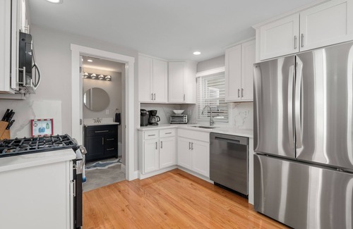 full stainless steel kitchen, hardwood floors, brand-new furnishings, central a/c, wi-fi, cable, and flat-screen tvs