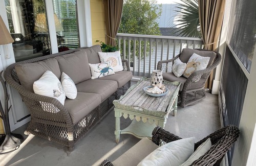 this is not your granny's beach house!! ocean's song is a gorgeous 3,800 sqft. house, decorated to reflect the Island/Coastal chic, and yet very comfortable with the 'feel' of a cozy old Isle of Palms beach house, yet it was built in 2007. high end finishes, granite counters, stainless appliances, hardwood floors throughout, laundry room with high end washer and dryer, plus the 'powder room' is a full bath as well!!
