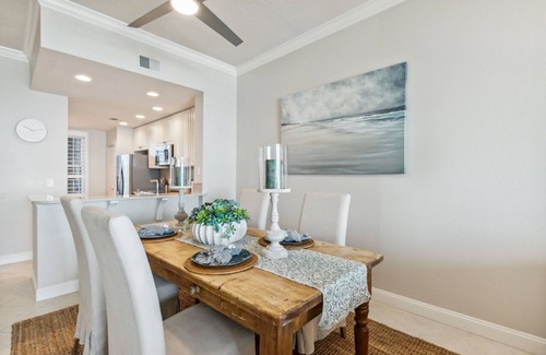 our guests find themselves in a seaside paradise within the first few steps of entering this spectacular villa! coastal collaborations of seaside decor displayed with fundamentally exquisite taste adorn each room of this 6th floor grandeur condo the open floor plan boasts a completely remodeled luxury kitchen equipped with high end appliances, extravagant granite, fully stocked custom craftsman shaker style cabinets, a wine cooler, and every kitchen essential necessary for the designated chef!