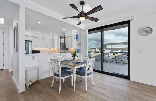 recently renovated in 2022 and 2023 with new flooring, lighting, doors, countertops, cabinets, furniture, appliances, high-speed internet and more Two very large bedrooms with attached bathrooms. The primary bedroom has a fireplace as well as its own private access to a second front facing sea view patio.