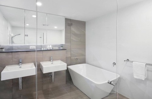 the property is recently built, boasting brand new finishes with balcony, gourmet kitchen, split system air conditioner in the lounge room, internal lift, internal laundry with washing machine and dryer and undercover secure complex parking for one car Master bedroom contains a queen bed with built in wardrobes, ensuite and balcony access, whilst bedroom 2 contains two single beds with built in wardrobes.