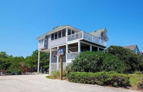 extras: private pool (30 x 14), hot tub, 6 tvs, screened porch, gas grill, high speed internet, air hockey, gas grill, outside shower, hammock, deck swing, basketball hoop, beach cart, beverage cooler, dvds and games, picnic table, parking for 6-8 vehicles, wood fireplace (available 11/1-4/1) and linens and towels provided No Smoking. No Pets. Seasonal Flex Stay available from October 1 - May 15 Distance to beach access: 450'. Beds: 2 Kings, Queen, 2 Bunk Sets, 2 Singles. House Address: 874 Whalehead Drive, Corolla. Key Type: Keyless entry. CHECK IN LOCATION: 1023 Ocean Trail, Corolla Office.