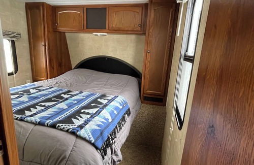 this single wide rv is 27 feet and has a queen size bed, pull out twin couch, single bunk beds (for kids) and the table drops for another single bed Located on the beach. Optional bunkhouse with queen/single bunk (extra charge may apply). only two tiers above the beach!