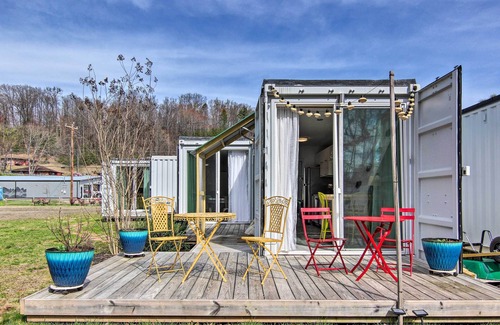 A one-of-a-kind Blue Ridge Mountain escape awaits at this 2-bedroom, 2-bath vacation rental in Old Fort. Sitting adjacent to the Pisgah National Forest with all kinds of hiking and biking trails, this cozy container home is perfect for anyone looking to explore the outdoors. Hike at Catawba Falls, visit the Mountain Gateway Museum, or take a day trip to Asheville. When evening comes, prepare a delicious dinner in your fully equipped kitchen or enjoy some local brews at the Whaley Farm Brewery.