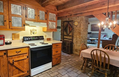 old hickory cabin sits on 4 wooded acres with a large deck in back that overlooks the woods (and hickory trees) and a small creek in the valley You will feel like you're in a tree house with the views below. It's a great place to bird watch and spot the abundant wildlife.