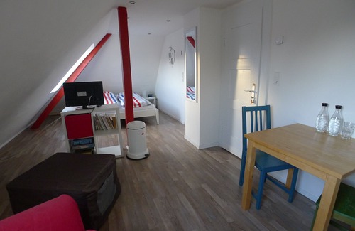 In our newly renovated Krupp house from the 1920s, we warmly welcome you to your home earth. The attic room with its own private bathroom can accommodate two people. In the garden city, the garden can of course be shared.