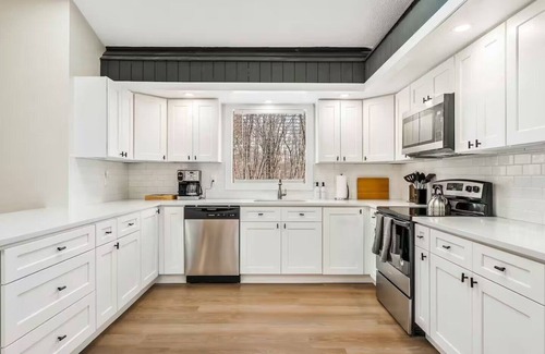 the new, modern kitchen is located right off of the main living areas, and is loaded with all you'll need during your stay (including a coffee maker & coffee pods)