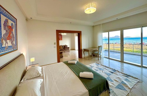 upon your arrival, you'll be captivated by the breathtaking view that this waterfront villa offers The magnificent beach stretches before you, inviting relaxation and wonderment in the face of the glistening sea. Every sunrise and sunset becomes a magical moment to savor from the various spaces of this exceptional villa.