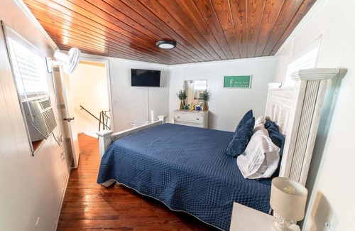family fun and fisherman friendly is the goal with this unique space! setup to sleep up to 12 (10 on beds + 2 on blowup mattress)
