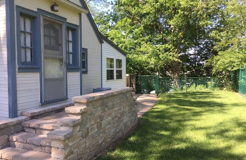 Rustic Two-Story Lake Cottage that sleeps 10-12 people. Large fenced in front yard and steps to dock on the lake in back. Dock and stairs to the dock are new for the 2021 season. The cottage has 4 bedrooms: 1 king bed, 5 double beds, and 1 twin. Two bedrooms upstairs and 2 downstairs. Living room/Dining area. Kitchen with coffee maker, toaster, basic utensils, pots/pans, dishes provided. Bathroom upstairs with shower. Bathroom downstairs with tub/shower.