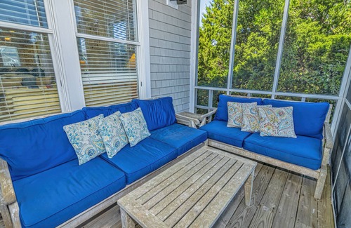 get ready to be 'miles away' at bramble reach! this dune-top beauty boasts 3 bedrooms, 35 baths, and a reverse floor plan. The king master suite downstairs has its own screened porch, perfect for sneaky naps. The second bedroom fits 2 twins, 2 trundles, and a private bath - sleepover central! The main living area upstairs has an open and screened porch, extra bar area, and half bath. The private third floor offers a cozy double bed and full bathroom. ocean views and relaxation await!