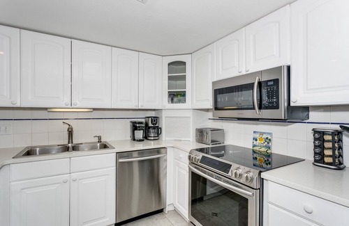after a memorable day at the beach, relax with an icy cold beverage on one of the two balconies Enjoy the sound of waves crashing on the shore while reminiscing about your day at the beach. The spacious kitchen is fully equipped and opens to the living room with a 65-inch flat-panel television, comfortable furniture, and that amazing view. The main floor also has a half bath. This unit sleeps 6 people.
