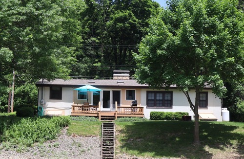 As you enjoy your coffee on the back deck, you can try to decide what to do that day. Do you drive 5 miles and climb the 1,000 steps and hike the mountain? Or do you launch your kayaks at Corbin's Island boat launch and enjoy a 3 hour downstream float back to your private dock? Or launch at 4th st for a 2 hour float? Or do you go golfing at one of 3 nearby golf courses? Perhaps you'd like to try the public pool in Huntingdon just minutes away or the swimming area at Seven Points area of Raystown Lake about 15 minutes away?This Lovely river front home is located on the Juniata River in Huntingdon. It features 3 well appointed bedrooms with TVs, one with a full bath, and another full bath and laundry room off of the hallway. The open layout is great for family get togethers. The kitchen has a nice glass top stove, a spacious refrigerator, and all the dishes, cups, pots, pans, and small appliances you may need. The dining area would easily accommodate 6 or more people and there is another table off the kitchen as well. The living room is spacious and includes cable TV, and looks out over the main feature... The River- lots of frontage for fishing, wading kayaking, or just relaxing on the back deck overlooking the water. Or you could grill on the deck and eat at the outdoor table. A firepit is also provided for marshmallow roasting and memory making. Located near Raystown Lake for more boating, swimming, and fishing options. Within 45 mins of Penn State University in State College for football or graduation. Long term discounted yearrentals considered - please inquire if interested. Please note that the TRAIN RUNS IN FRONT OF THE PROPERTY AND BLOWS ITS HORN FREQUENTLY..