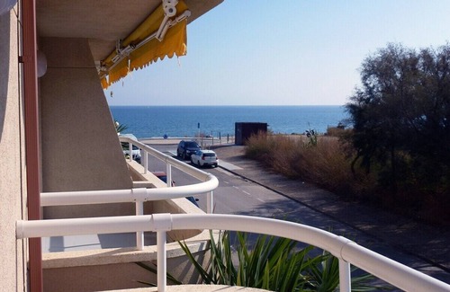 one bedroom apartment with pool and sea views from the terrace, in a building in front of the beach The apartment is small but well equipped: a double bed (160cm), bathroom with bathtub, living room with sofa bed, open kitchen and terrace with table and chairs. Washing machine. Nearby services: bakery, butcher, greengrocer, bar... Shared garden and pool, with a children's pool and overlooking the Medes Islands. There is a pet friendly beach. From the garden you can access the beach directly, as well as from the main entrance door. fewer than 50 steps and your feet will be in the sea!