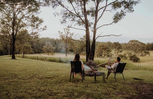 escape to our charming getaway surrounded by lush greenery, where you can enjoy stunning views of eucalyptus trees, spend your evenings by our outdoor fireplace, or relax under the milky way, guided by the gentle light of mumma kia