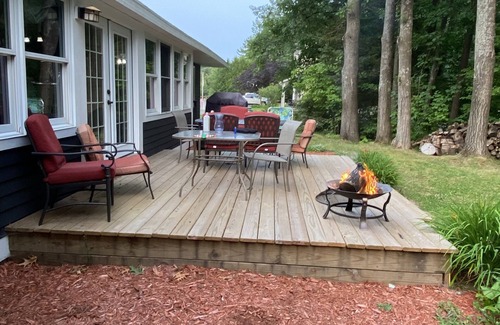 Cottage on the Bluff the rate went up because the whole house is available now, 4 bedroom house that sleeps 10, in a desirable neighborhood, one mile walk to downtown Harbor Springs, where all the shops, entertainment, restaurants, and some of the best beaches are. A bike path 1/4 of a mile is convenient if you want to take a bike ride. Boyne Highlands worlds best golf, and skiing only 5 miles down the road! Petoskey is only 6 miles, where you can enjoy the festivals, restaurants, and beaches. Take a day trip up to Cross Village (only 16 miles) where you will see some of the most beautiful sand dunes, beaches, and trails to hike through the woods. Mackinaw City (only 30 miles) enjoy Mackinaw City, so much to do or take the ferry to Mackinaw island. Chefs kitchen with all the utensils and dishes you will need to make tasty meals for your family, a great place to entertain your family on vacation where there is plenty of space inside (seating for 13 people) or in the beautiful backyard with all the trees and flowers, plenty of tables and chairs as well..