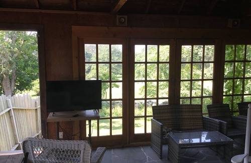 convenient north road location - close to menemsha beach, chilmark store and picturesque hiking trails Idyllic 9 acre private retreat seeks quality time with extraordinary individuals who would appreciate Vineyard country living at its best. Looking for two adults, but will consider one grown daughter working on her graduate thesis, or three 80-year-old spinster sisters. Home is original and exceptional for its 1710 character. Separate and spectacular stone garden room perfect for writers working on their final edits, musicians to finally get around to working on new repertoire, or other creative types who seek the quiet and inspiration this house has delivered for over 60 years in our family. Special rates available for the right guest.