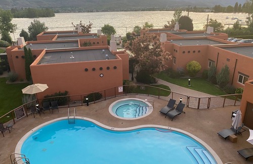 this peaceful end street condo at osoyoos lake is the perfect scenario for your next escape 1,400 sq ft, 3BDR, 2 Baths, Central AC and a private marina with lounge dock for condo guests only. Enjoy the pool and hot tub and prepare a BBQ from the large balcony. the distinguished décor sets the atmosphere for your perfect vacation!