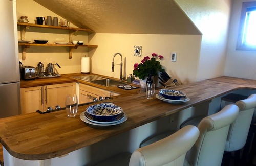 dear guests, with stunning views of the la plata mountains and the sweeping farmland, owl's nest is so sheltered and cozy on the inside This is a romantic jewel box of comfort, with all the amenities of a boutique hotel. We love having a diversity of people come stay from all over the world. Located in the irrigated farm and ranch land on Florida Mesa, this location is only 15 minutes drive from Downtown Durango. Guests are always blown away by the solitude and beauty of the place so close to town. You will often hear Barn Owls hooting at night or see them swooping though the moonlight on the hunt! My husband and I have been renting vacation homes for 15 years now and this is our latest addition. We have really tried hard to make this one super special, and focused the remodel to get a unique and quality feeling. You can see all our places at Look at our reviews and see, we have lots of happy guests! Children and pets are more than welcome here. The orchards are so fun to just relax in for a picnic or outdoor nap, and you can go for a walk around the surrounding hay fields. We have cows, horses, chickens and one good farm dog. They are all overly friendly! The patio is complete with BBQ and furnishings for outdoor dinning or relaxed morning coffee. The entrance is a foyer with an office area and coat closet and then you go up the stairs to the main living area. A super comfortable king sized bed made of reclaimed telephone poles has a built in bookcase around the bottom with a small library. A reading nook for enjoying the quiet with a book. There is a twin bed also with a Tempurepedic Mattress that kids will love, tucked into one of the window alcoves. The kitchen is both adorable with open shelving and built in bar seating. very usable with lots of great cookware to make a chef happy! let me know if you have any questions about owl’s nest?
