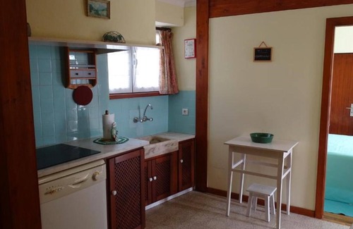 the kitchen is equipped with an oven, a stovetop, and a refrigerator, as well as a coffee maker, an electric kettle, and a microwave Bathroom amenities include towels, toilet paper, and soap. And because there's access to laundry facilities, you can go a bit lighter on your packing. Other amenities at this 3-bedroom, 1-bathroom rental include bed sheets and a dining table.