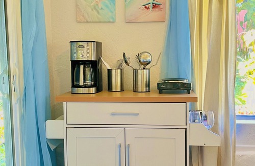 Beautiful, peaceful, garden atmosphere. 5 minute Drive to Kahakai Park with Gorgeous Ovean Vista View. Ideal for singles or couples. However we have two single air mattresses and extra bedding available for up to two children. Queen Size Bed and 32” TV FREE Netflix and HBOMax and Premium Channels. Desk work space area. Portable Crib and High Chair, available upon request. French Doors open to private Outdoor lanai sitting area with a Gas BBQ Grill with side burner and outdoor sink. Boogie Boards, Beach Towels, 2 sets of snorkels and flippers, small cooler and beach toys all included. Plenty of fresh fruit on property, available to guests, to pick as they like (depending on season) Coconuts, Passionfruit, Oranges, Lemons, Pineapples, Avocados. Located about 30 minutes drive from Hilo airport..