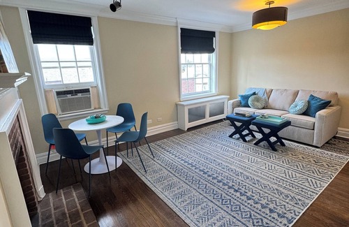 Nestled in the heart of downtown Princeton, this delightful studio offers guests a cozy living room with a comfy queen sofa bed. This adorable space boasts elevator access in a prime location directly across from the University. Located just above the Ralph Lauren store on Nassau Street, Princeton’s coffee shops, restaurants, shopping, and famous Palmer Square are all just steps away. Dining options abound, but a small, yet fully functional, kitchen also allows you to shop a local market and cook at home. Ideal for visiting professors, parents, and alumni—or to anyone looking to enjoy this lovely college town!.