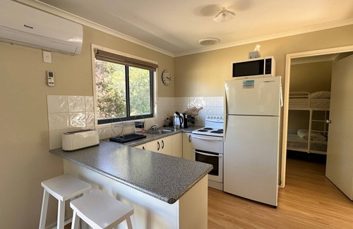immerse in the warmth of three beautifully-appointed bedrooms, each thoughtfully curated for a blissful rest Unwind in the tranquil master suite adorned with a queen-size bed, whilst two additional rooms house cosy kids-friendly options with bunk beds and single beds. A well-maintained bathroom will cater to all your needs, perfect for refreshing morning routines or soothing evening wind-downs.