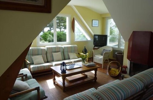 PANORAMIC VIEW OF THE OCEAN, apartment for 4 people of 92 m², located on the 1st floor of a detached house, including a beautiful living room with sitting area and dining area, kitchen, 1 bedroom (2x90 or 1x180) with cupboard, 1 bedroom (2x80 or 1x160) with cupboard, bathroom and separate toilet. A pleasant shaded terrace in hot hours, allows you to enjoy one of the views. At the end of the garden, direct access to the beach... (out of season: conso. E.D.F in addition.)