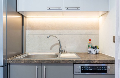 upon entering, the guests find themselves in a beautifully designed spacious open plan area consisting of the air conditioned living room with a large sofa, satellite 40 hdtv with netflix, an indoor dining area and a fully equipped kitchen of top quality fixtures and appliances From the living room large glass doors open onto a balcony with an outdoor dining table offering mountain and sea views. Additionally, there is a WC on the same floor.