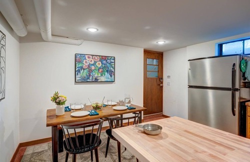 Paoli Den is the fully refinished lower flat of this peaceful and clean vacation rental in the heart of Verona with a major bike path right in the backyard! This space offers a full kitchen, comfortable dining space, two queen bedrooms and a bonus space that sleeps one person. Please note that the bonus space is a comfy day bed but does not offer privacy as it is a shared space. Minutes from EPIC and highly walkable. The expansive yard offers a fire-pit area, yard games, outdoor dining and grill for guests. We provide all necessities for a relaxing stay including multiple options for coffee and tea lovers. We aim to provide a five-star experience for all guests who choose our space! Please note! This is the lower flat of a three-flat home..