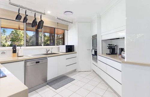 this spacious home is the perfect place to take a break from the hustle and bustle, conveniently tucked away along the coast Take a short walk to the beach where the bush lining the water’s edge is full of tiny birds, while a myriad of wildlife, including turtles, stingrays, water birds and the majestic osprey, fill the bay.