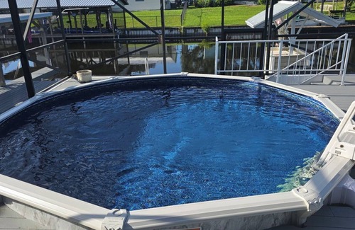 This is a wonderful location for all from fishing to relaxing at home this is the place for you. Everything is on the same floor for easy access. This place includes 1 full bed and 2 king bed and a queen size pull out. There are 2 full bathrooms. You have your own private screened in pool, Concrete boat ramp, and a dock with space to dock 3 boats. 3/4 Mile to near by stores and restraunts. Located on Award Winning Lake Okechobee. Pets and Children allowed..