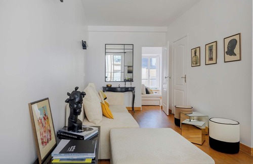 located on the 1st floor of a classic 3-storey parisian building—with lift access—the apartment spans 50m² and is thoughtfully designed for both relaxation and functionality