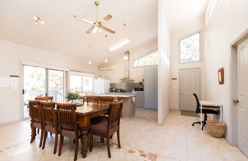 Discover ultimate comfort at Parkview North, just a short stroll from Halls Gap Town Centre. This spacious holiday house is designed for large families, accommodating up to twelve guests across four bedrooms with versatile sleeping configurations. fully furnished, the house offers amenities like a wood fire, wifi, smart tv, and a pool table for endless entertainment and a large timber dining table that everyone can fit aroundyour perfect halls gap retreat awaits – book now for a memorable stay! a cot and high chair is available to use
