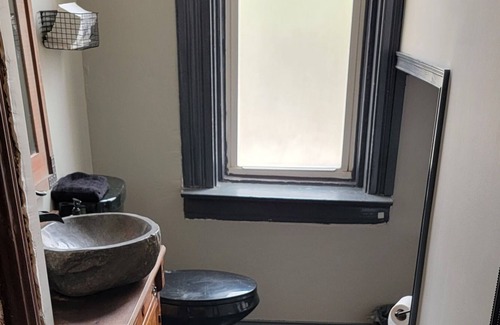 Enjoy your stay in a newly renovated 1870's Parsonage that is a freestanding building. The rental is the ENTIRE building. First floor foyer. living room, large screen TV, large dining room. half bathroom, and full kitchen. All bedrooms are upstairs - Master Bedroom with King bed, second suite with Queen bed and common living room with kitchenette/wetbar. Enjoy a soak in the refinished clawfoot tub in the bathroom, after enjoying a relaxing meal at one of our local restaurants. Please see pictures for stairwell required to reach the bedrooms. There is no elevator.