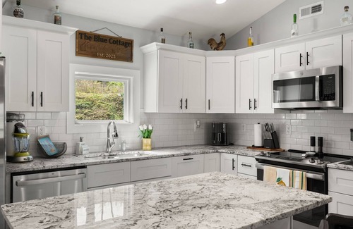 Located in Floyds Knobs, enjoy what this 2-bedroom cottage has to offer. With a fabulous fitness room, hot tub, AC, and heating, guests can relax in the soothing ambiance of the king and queen beds. You're sure to make fantastic memories with a stay at our place..