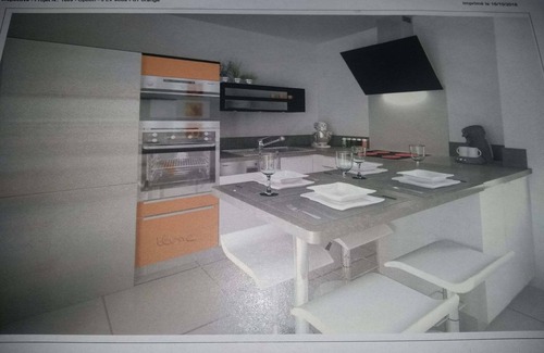 layout: ground floor: (kitchen(dining table, hob, electric kettle, hood, coffee machine, oven, microwave, dishwasher, fridge-freezer), living/diningroom(tv, dvd player, bar), toilet, conservatory/veranda) on the 1st floor: (bedroom(double sofa bed(140 x 190 cm)), bedroom(double bed(140 x 190 cm)), bedroom(double bed(140 x 190 cm)), bathroom(shower, 2x washbasin, toilet)) basement: (washing machine) heating(electric), terrace, garden, garden furniture, bbq, parking