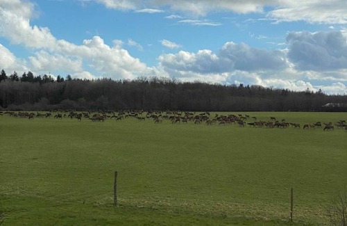 gîte not available for hunting activities Unique: the Hôtellerie du Brame is a fully restored country house in the heart of the Pays d'Auge region, surrounded by greenery and in the immediate vicinity of the Saint Evroult forest, home to majestic wildlife that you can safely observe from the gîte, offering fascinating encounters with animals in their natural habitat. At nightfall in September, let yourself be enchanted by the roar of the deer! The Pays d'Auge, renowned for its bucolic landscapes, apple orchards, and equestrian traditions, is the perfect place for those wishing to discover the authentic charm of Normandy. In addition to its picturesque villages with half-timbered and brick houses, the region is famous for its cheeses, particularly the famous Camembert, and its cider. If you enjoy hiking, local history, or simply the peace and quiet of the countryside, this house is an ideal base for exploring the region and offers a unique and peaceful living environment.