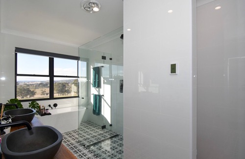 The gorgeous home was designed for functional daily living, entertaining and embracing the environment that it adorns. The house is elegant, functional, very warm and light. The huge kitchen is a centre piece of the main living space featuring vaulted ceilings, amazing wood fire and a seamless flow to the huge north facing alfresco, that is perfectly level to the adjacent sprawling lawn.