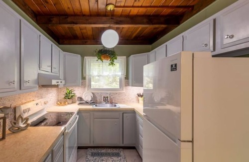 this secluded charming chalet is the perfect retreat for nature lovers looking for a peaceful and serene escape Located by a picturesque stream, you'll wake up to the soothing sound of water flowing and birds singing. The chalet is nestled in the woods and features a large deck overlooking the stream.The house is steps away from the lake and approximately 6 minute walk to the main beach area.
